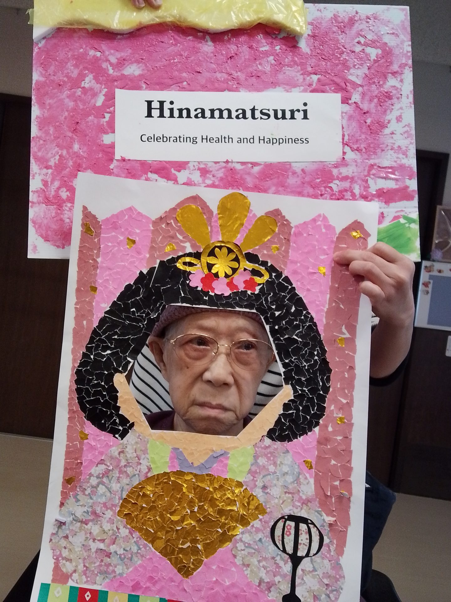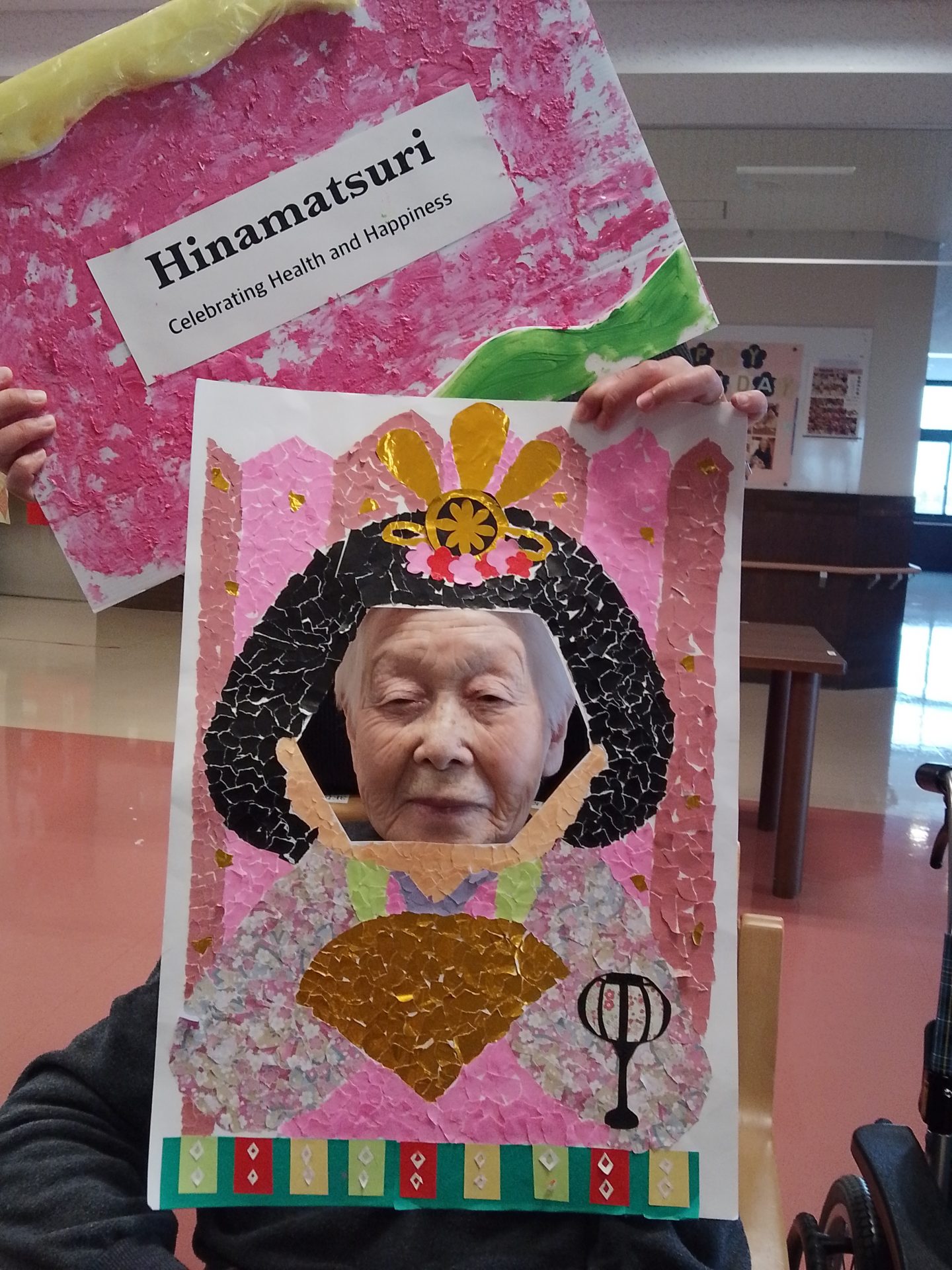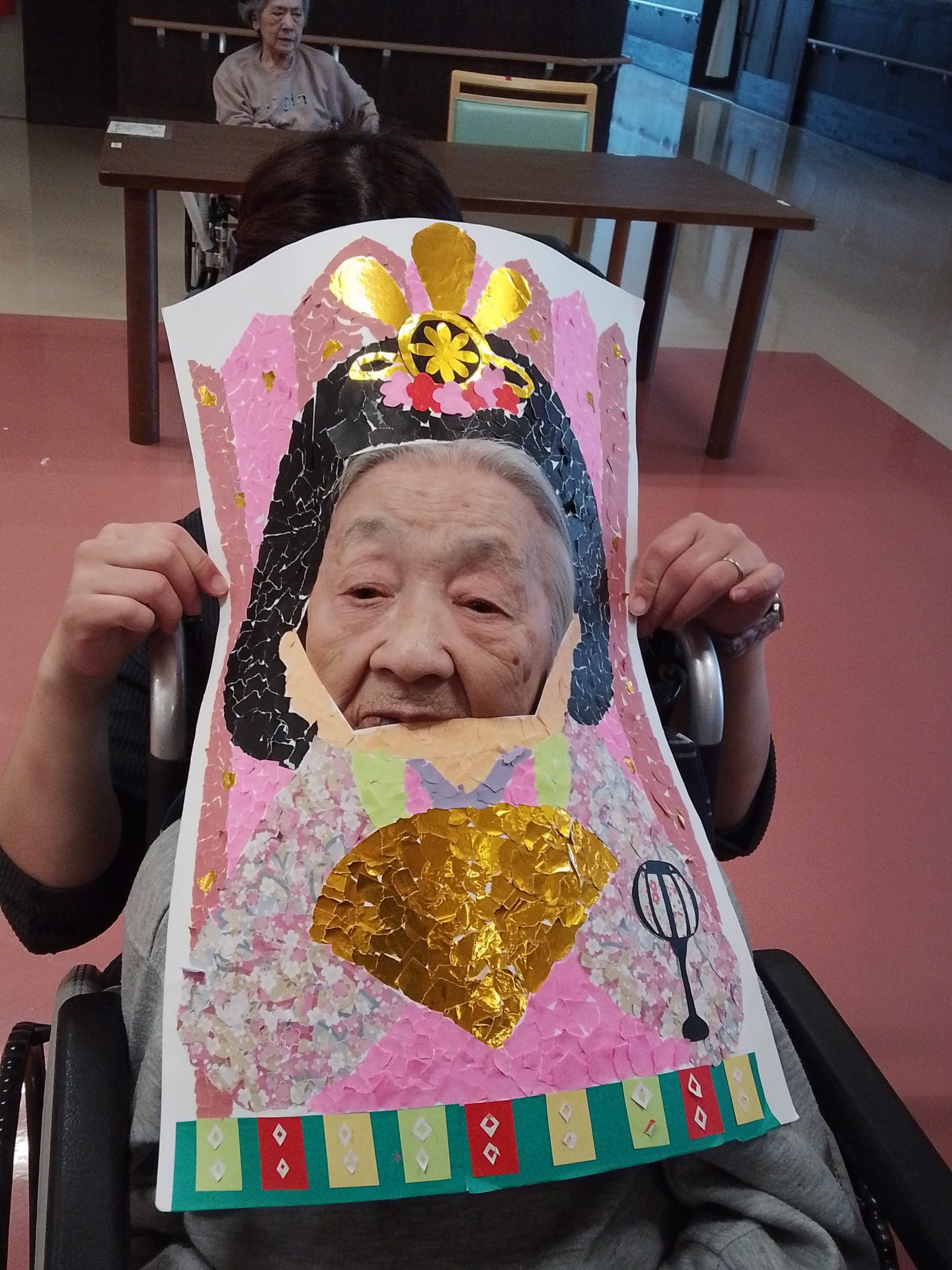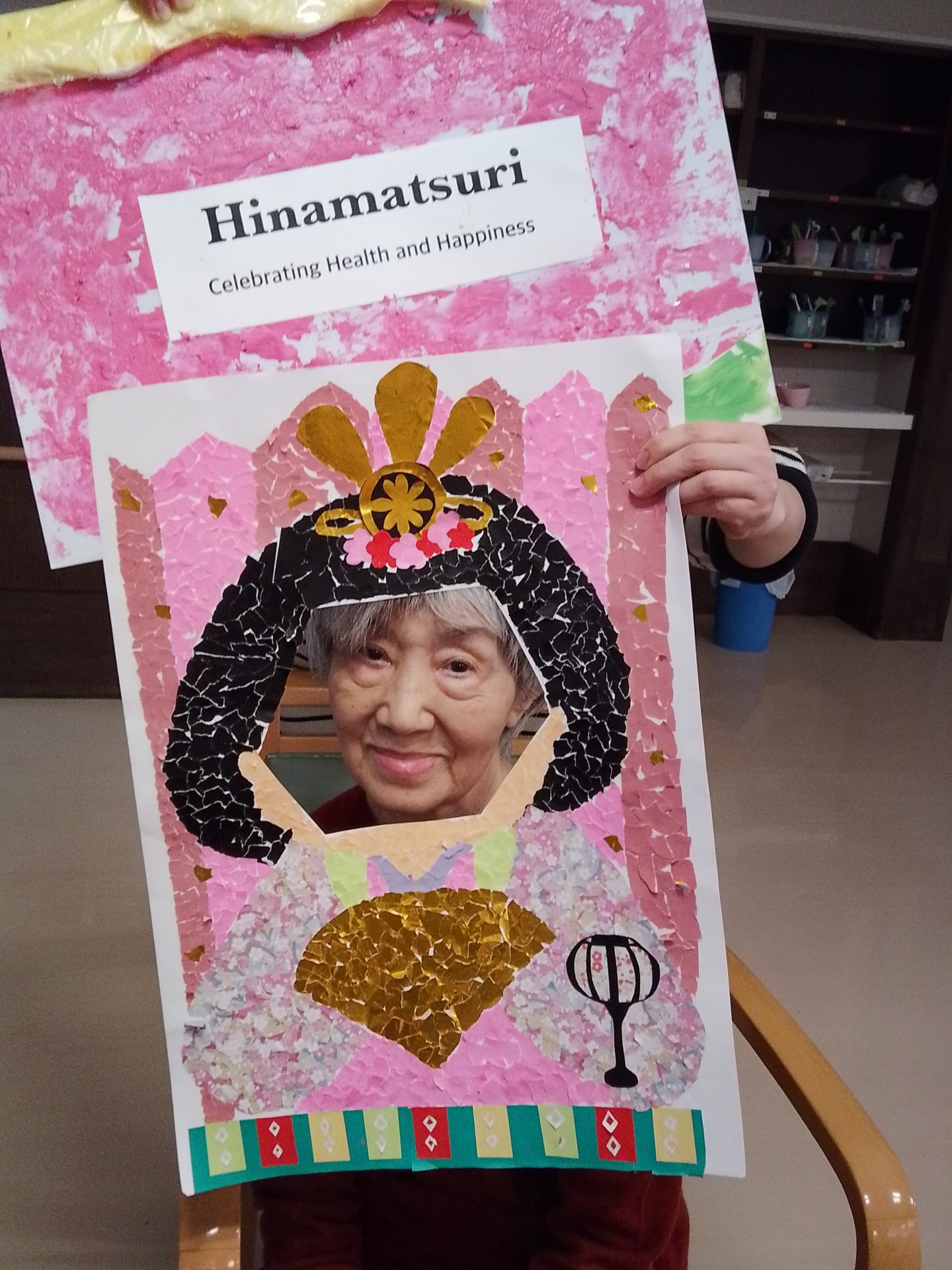 今年のひな祭りは、お内裏様とお雛様の顔出しパネルを作成し、撮影会を行いました。お内裏様とお雛様になりきり、春の風物詩を感じることができ、笑顔が見られておりました。